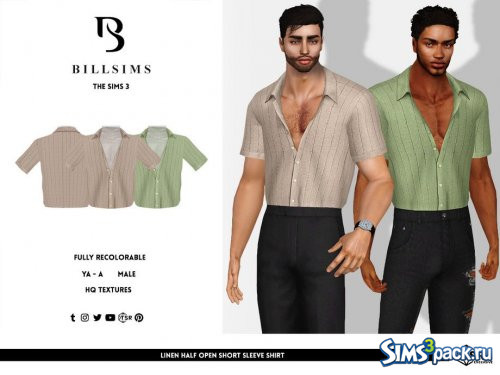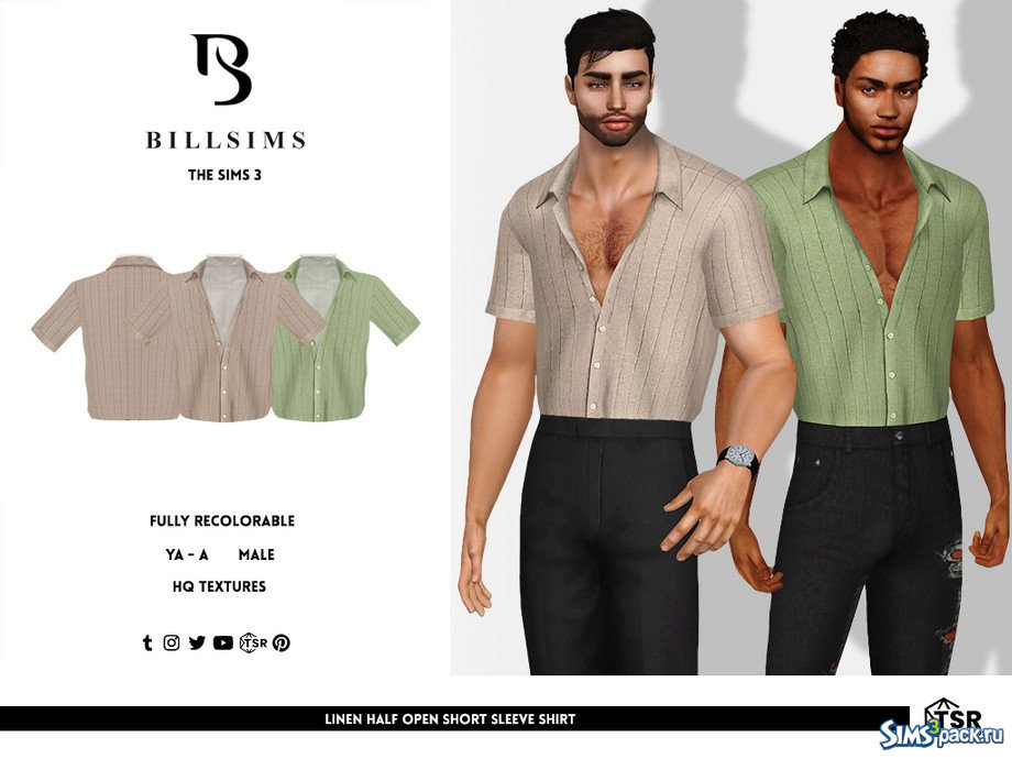 Скачать Льняная рубашка с коротким рукавом от Bill Sims для Симс 3