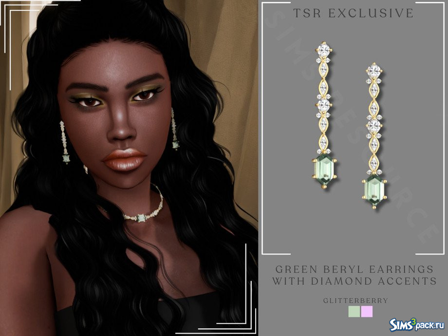 Оригинальное название - Green Beryl Earrings with Diamond Accents.