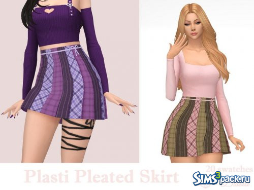 Юбка со складками на талии, сшитая из нескольких материалов в клетку и в полоску.
