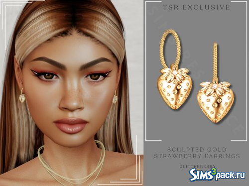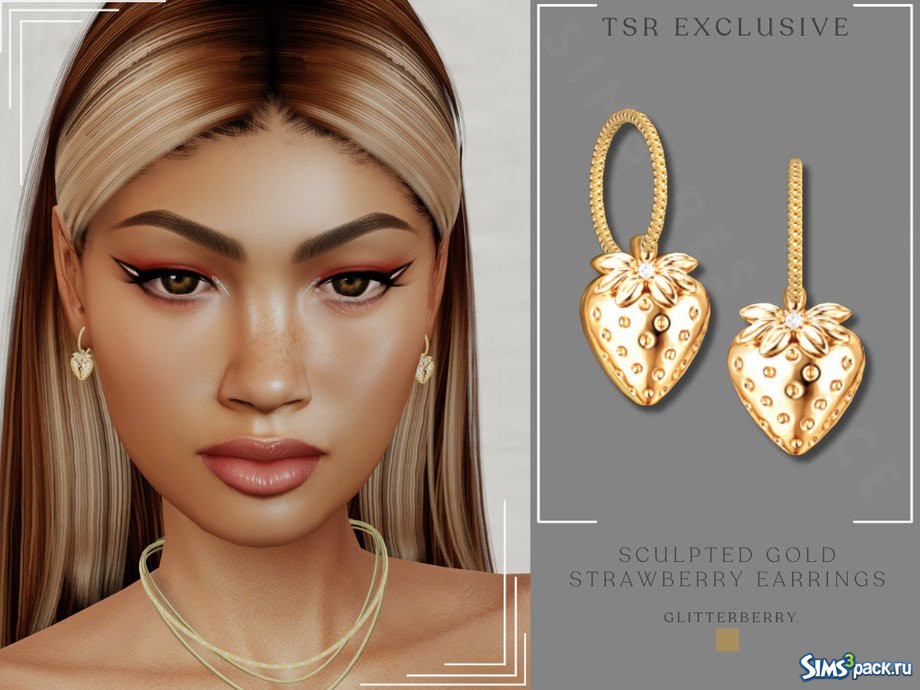 Оригинальное название - Sculpted Gold Strawberry Hoop Earring.