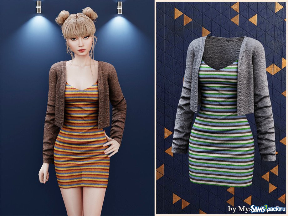 Полосатое платье с укороченным кардиганом от MysteriousOo