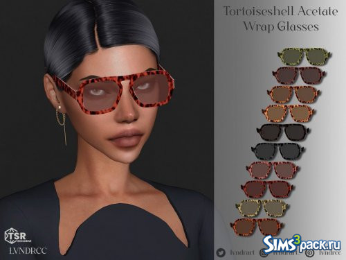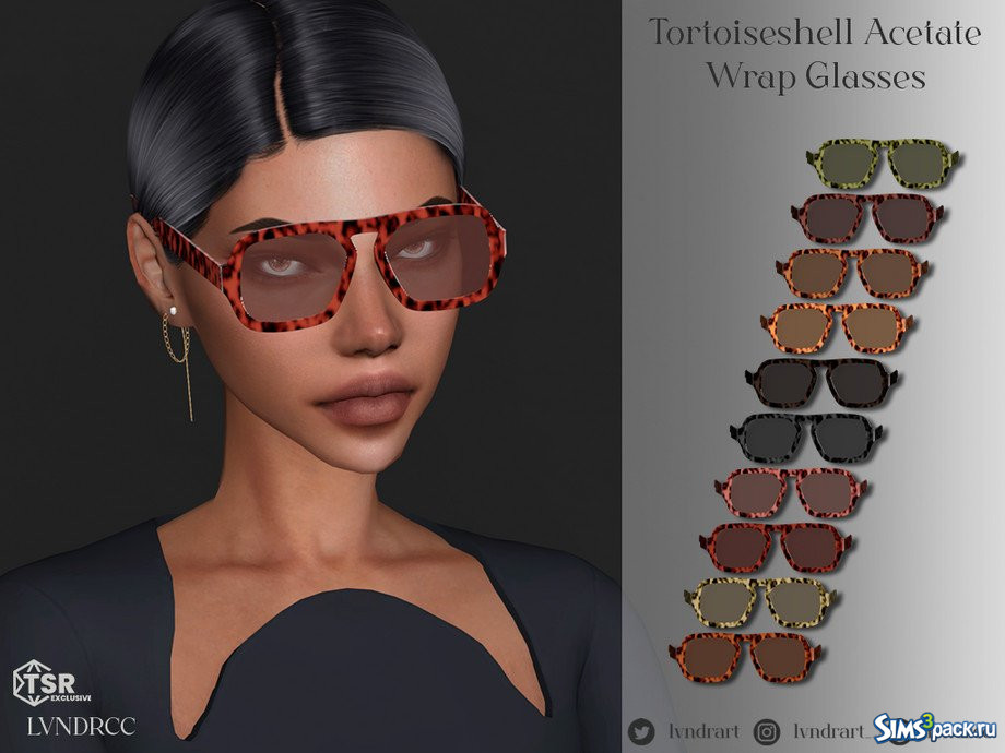 Оригинальное название - Tortoiseshell Acetate Wrap Glasses. Большие солнцезащитные очки из ацетата с современным геометрическим узором под черепаховый панцирь и прозрачными цветными линзами. Для женщин.