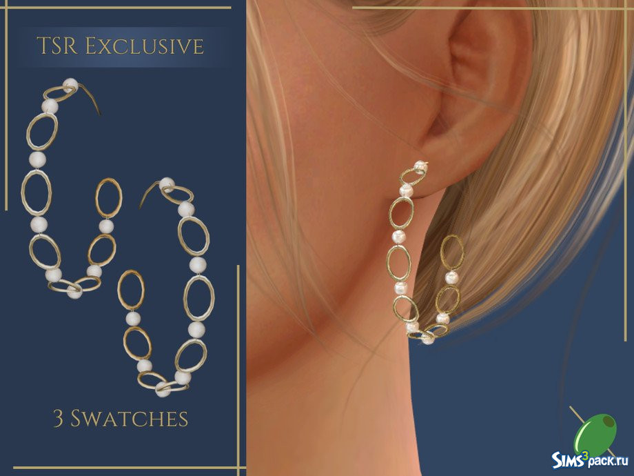 Серьги-кольца среднего размера с жемчугом и крупными звеньями.