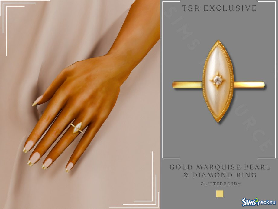Оригинальное название - Gold Marquise Pearl and Diamond Ring.