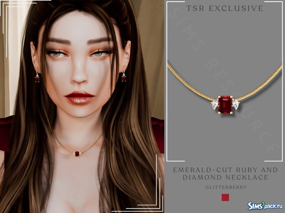 Оригинальное название - Emerald-Cut Ruby and Diamond Gold Necklace.
