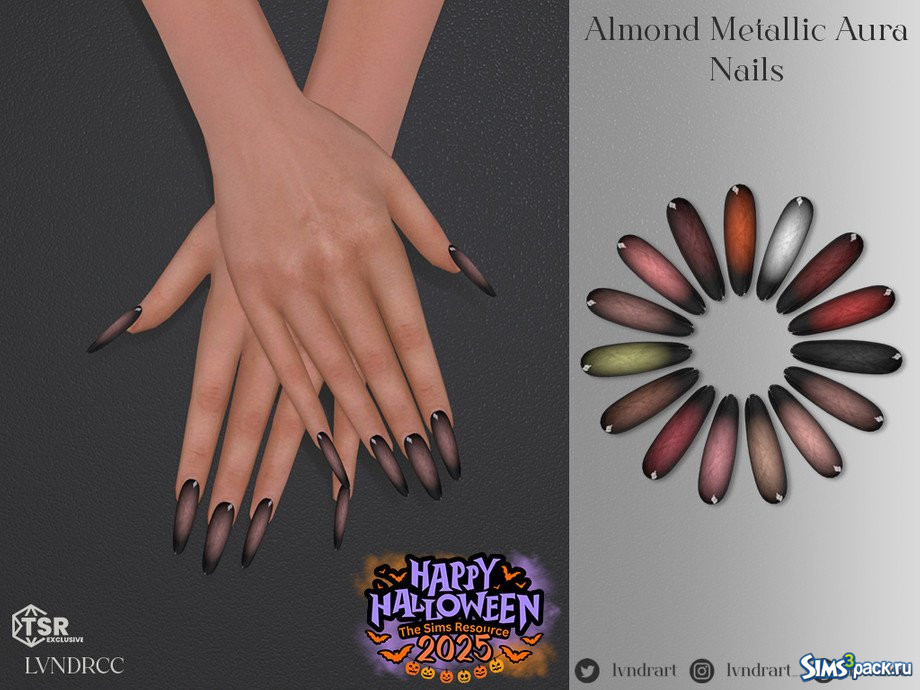 Оригинальное название - Halloween 2025 Almond metallic Aura Nails.