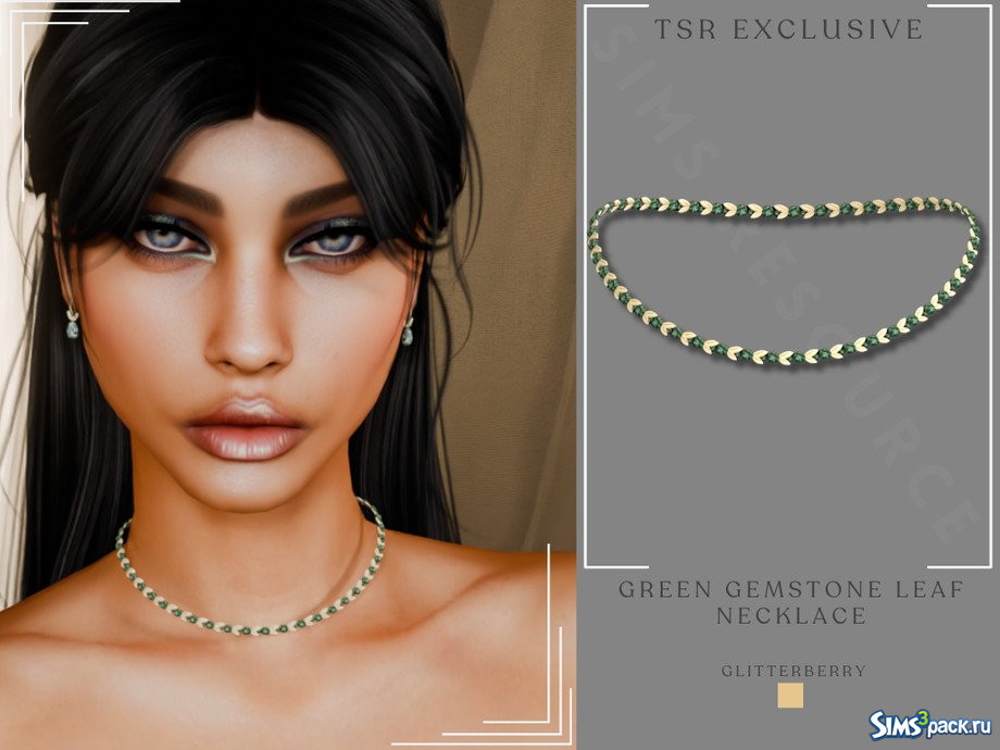 Скачать Ожерелье из листьев с зелёным камнем от Glitterberryfly для Симс 4