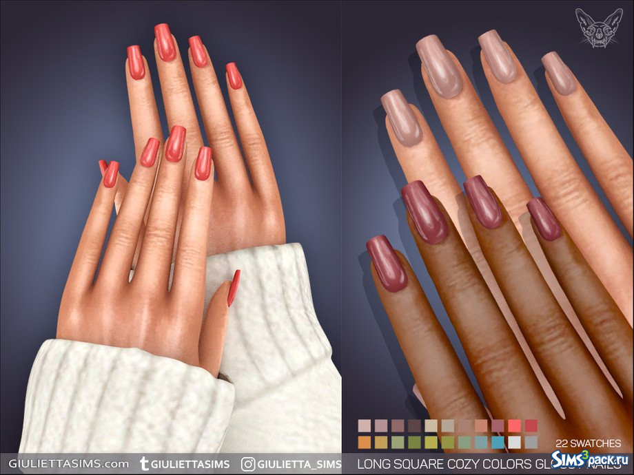Оригинальное название - Long Square Cozy Colors Glossy Nails.