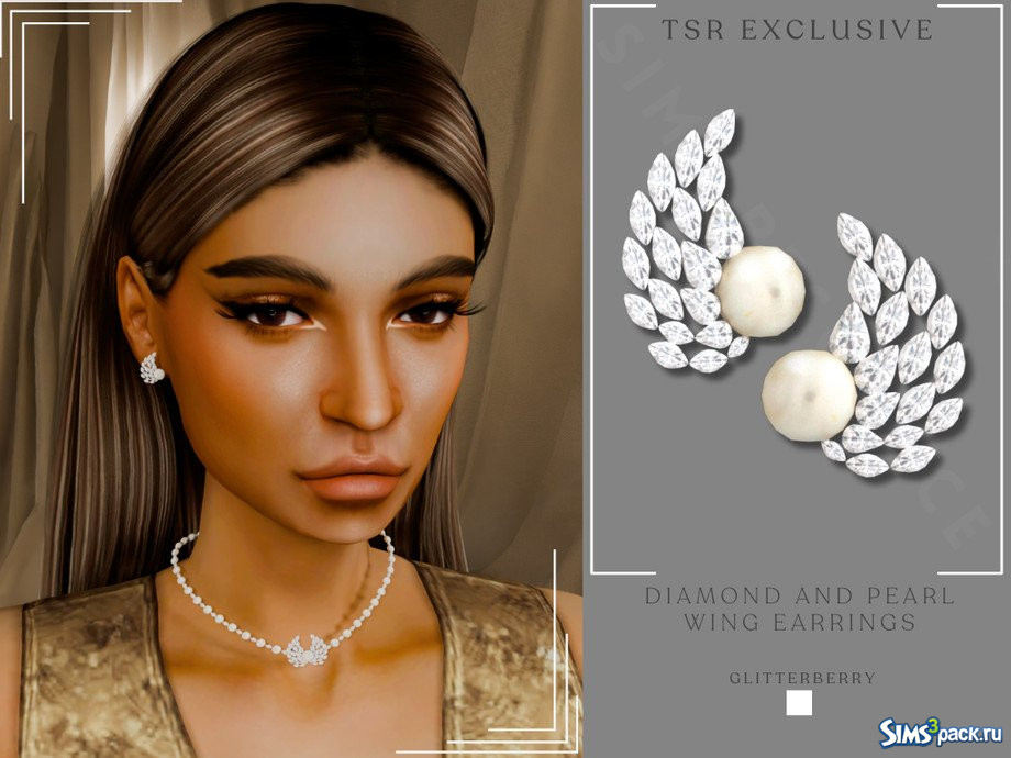 Скачать Серьги - пусеты с бриллиантами и жемчугом от Glitterberryfly для Симс 4