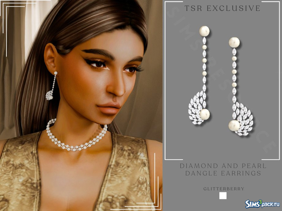Скачать Серьги - подвески с бриллиантами и жемчугом от Glitterberryfly для Симс 4