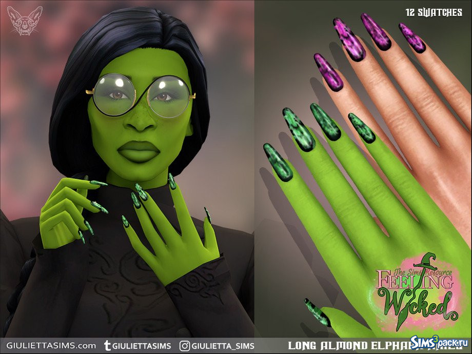 Скачать Длинные миндалевидные ногти от Feyona для Симс 4