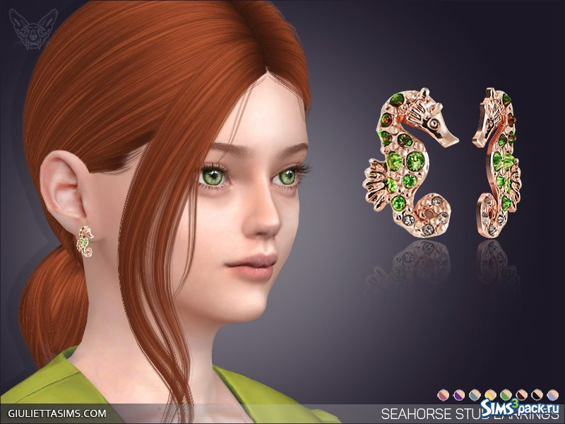 Скачать Серьги - гвоздики в виде морского конька для детей от Feyona для Симс 4