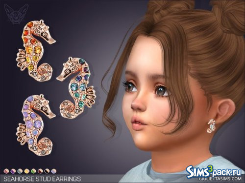 Скачать Серьги-гвоздики в виде морского конька для малышей от Feyona для Симс 4