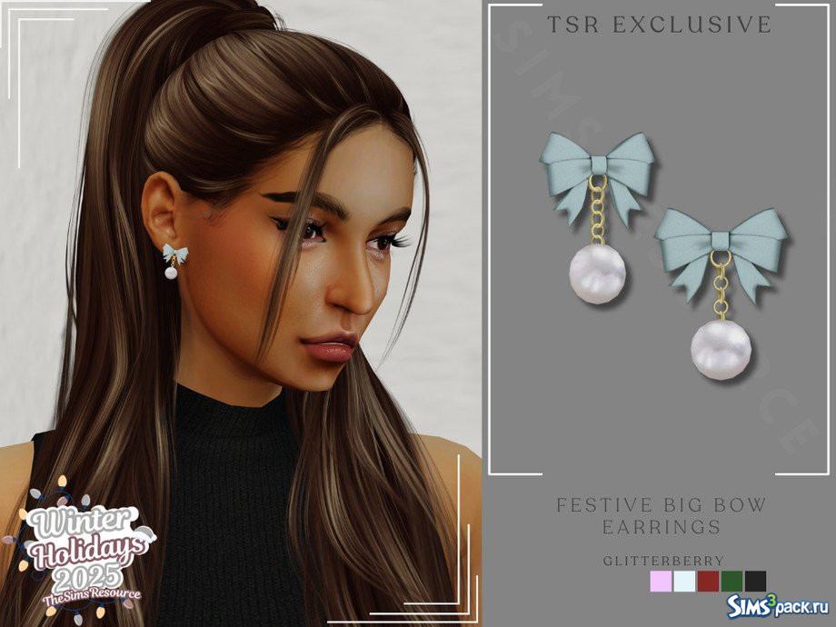 Скачать Праздничные серьги - банты от Glitterberryfly для Симс 4