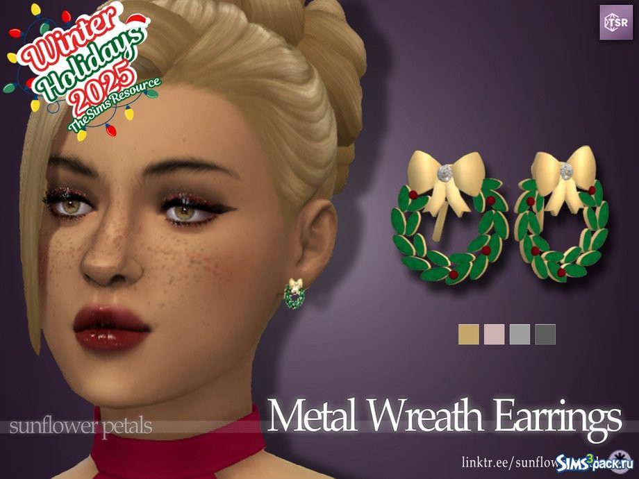Скачать Металлические серьги - венки от SunflowerPetalsCC для Симс 4