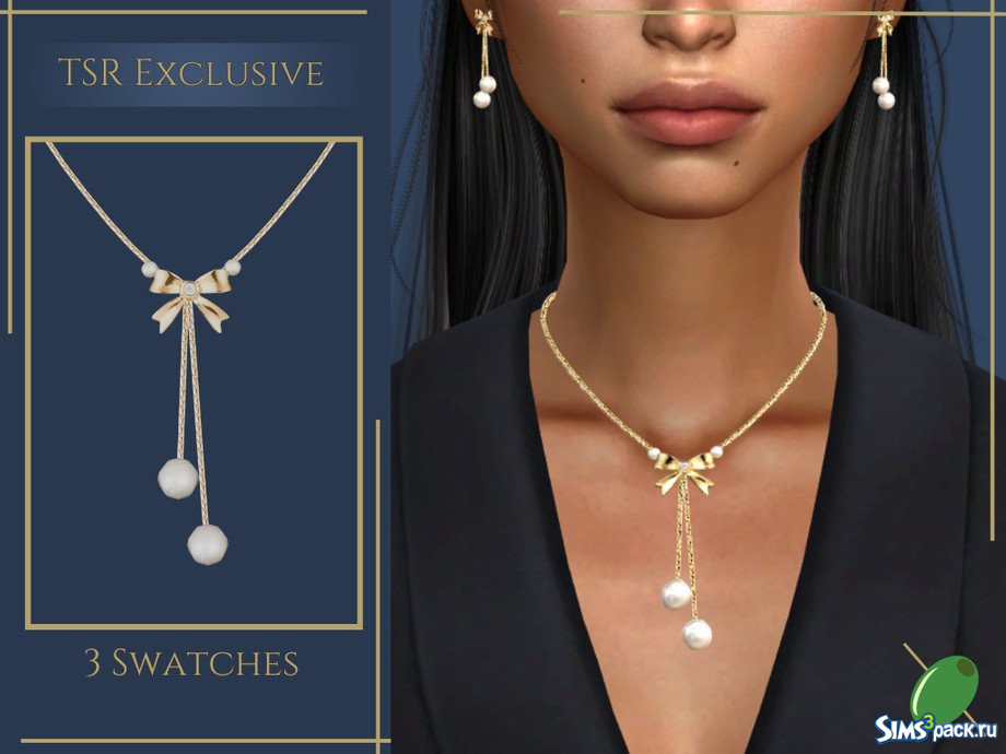Скачать Длинное колье с золотым бантом и жемчугом от Pitted0live для Симс 4
