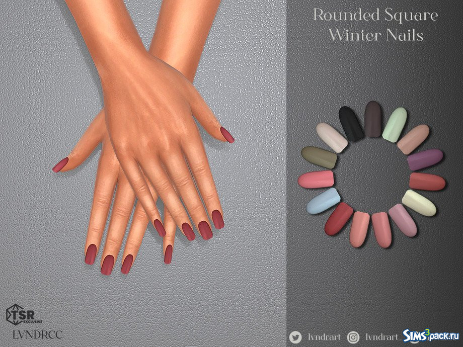 Оригинальное название - Rounded Square Winter Nails. Короткий овальный маникюр в практичных и модных зимних оттенках с мягким сатиновым полуматовым покрытием. Для женщин.
