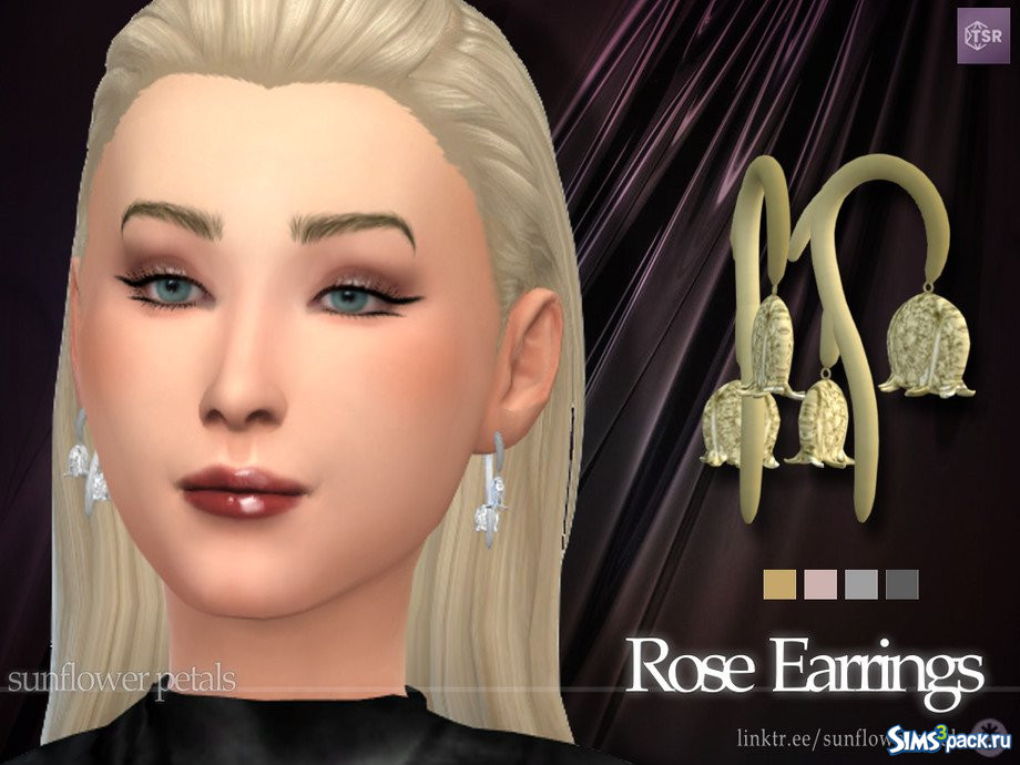 Скачать Серьги с розами от SunflowerPetalsCC для Симс 4
