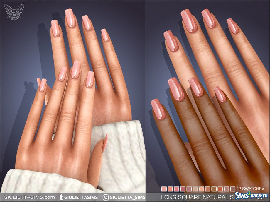 Скачать Длинные квадратные блестящие натуральные ногти от Feyona для Симс 4