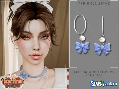 Оригинальное название - Blue Bow Pearl Drop Earrings.