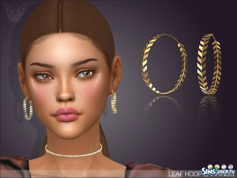 Скачать Серьги - кольца в виде листьев от Feyona для Симс 4