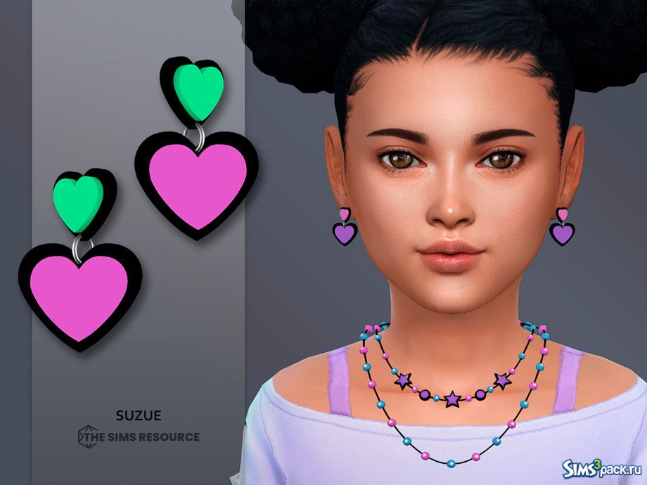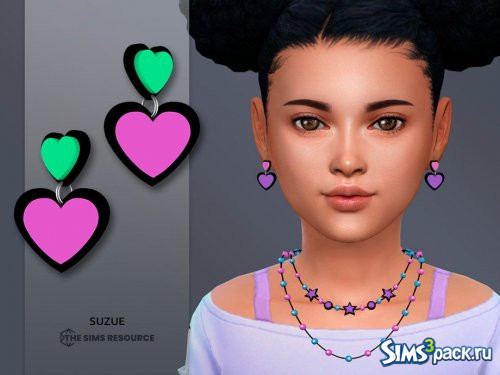 Скачать Неоновые серьги для детей от Suzue для Симс 4