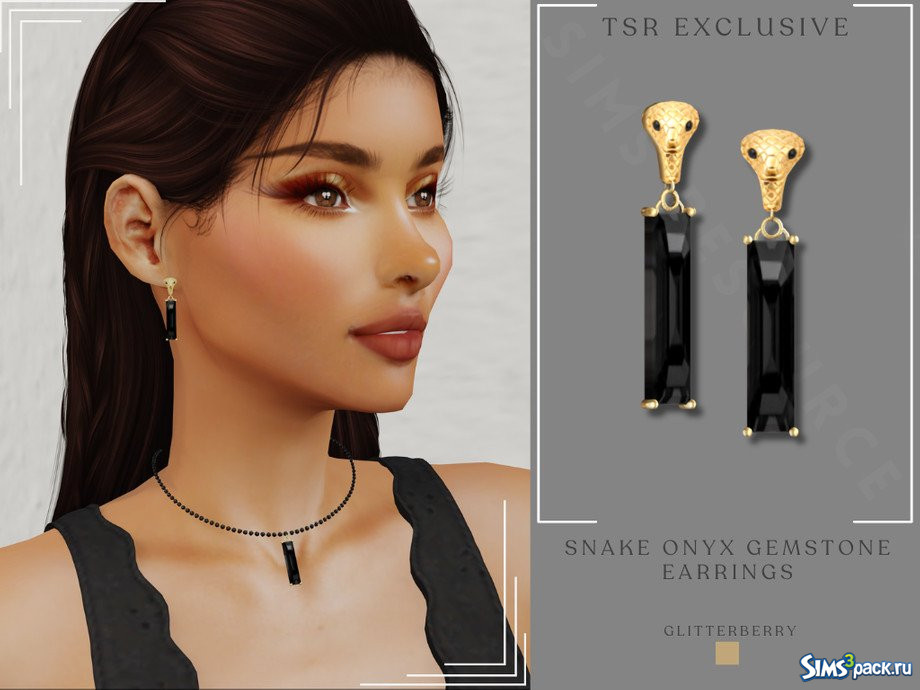 Скачать Серьги с ониксом в виде змеи от Glitterberryfly для Симс 4