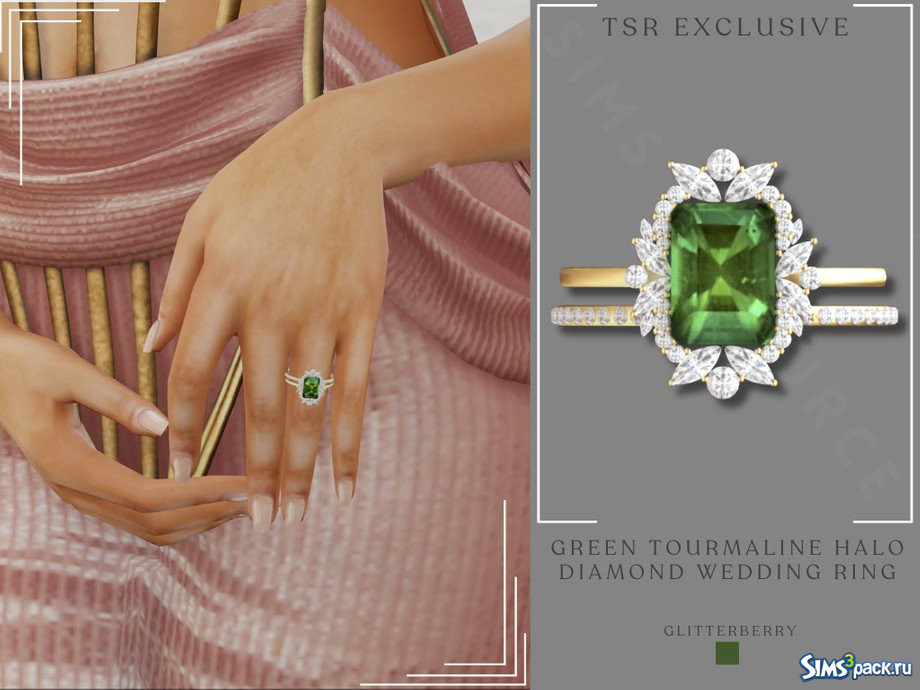 Скачать Обручальное кольцо с бриллиантом и зеленым турмалином от Glitterberryfly для Симс 4