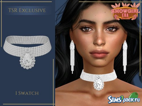 Массивное колье с несколькими бриллиантами и крупным бриллиантом в форме груши.