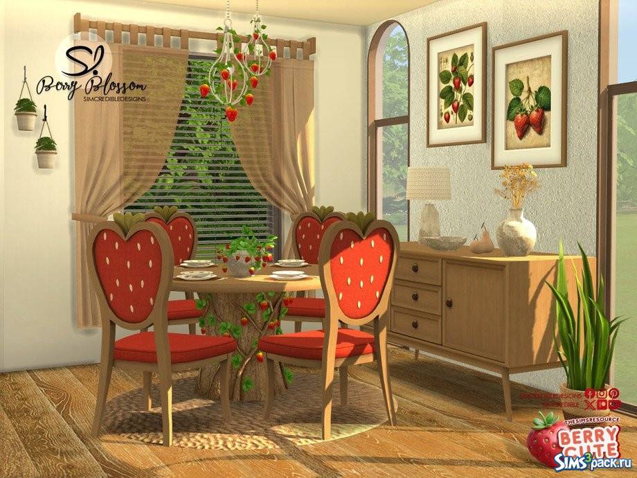 В наборе: штора, 2 потолочных светильника, настольная лампа, сервант, стул для столовой, обеденный стол 1x1, обеденный стол 2x2.