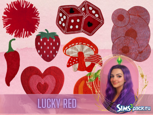 Коллекция декоративных ковриков с яркими красными цветами и игривыми графическими формами.