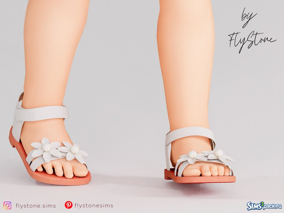 Скачать Детские сандалии с цветами и жемчугом от FlyStone для Симс 4