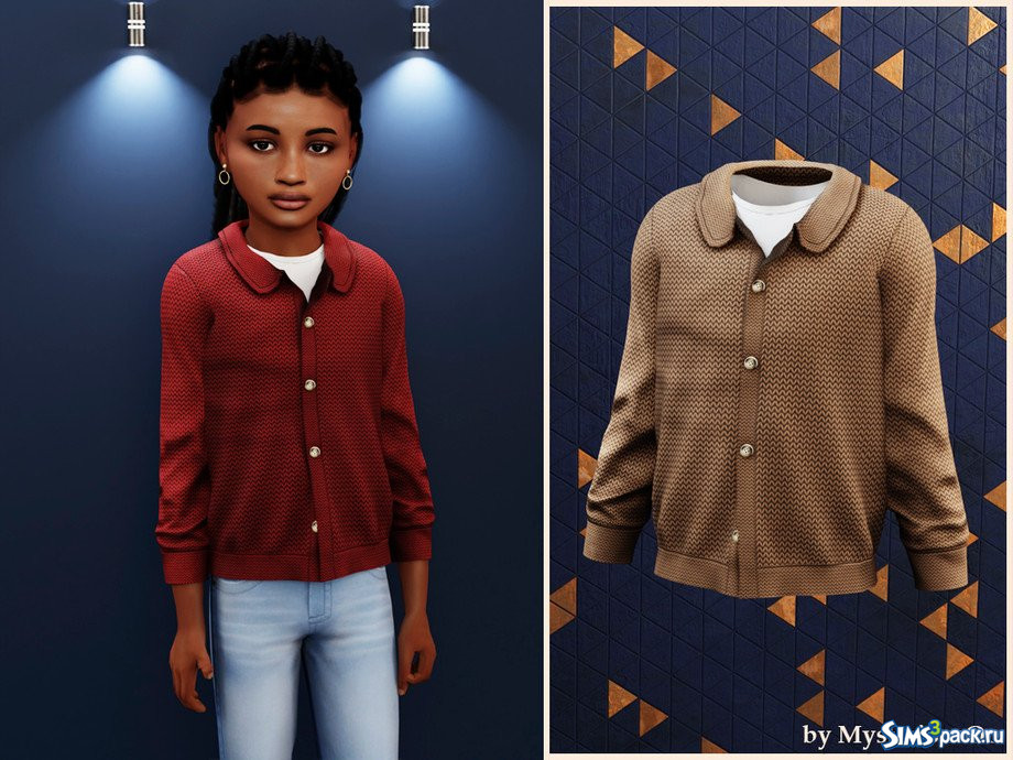 Скачать Детский классический вязаный кардиган на пуговицах от MysteriousOo для Симс 4