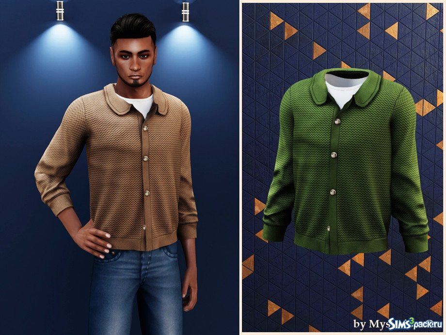 Скачать Мужской классический вязаный кардиган на пуговицах от MysteriousOo для Симс 4