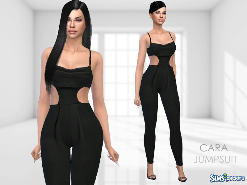 Черный комбинезон с вырезами для женщин-симов.