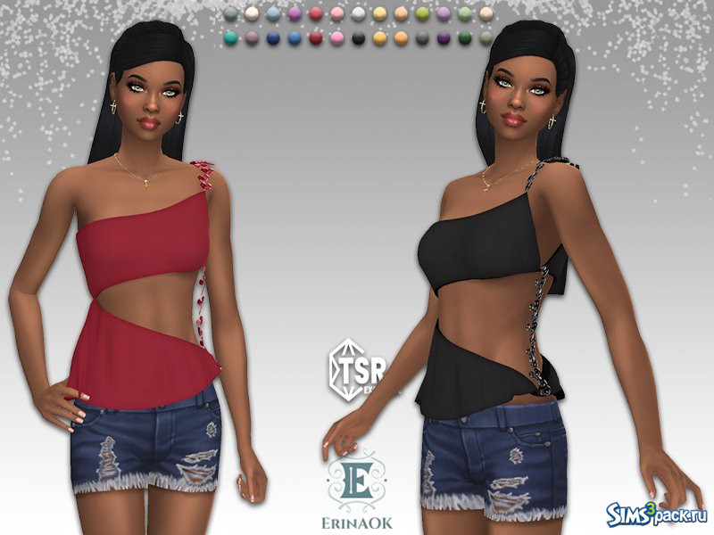 Оригинальное название - ErinAOK Womens Top 091525. Женский топ из вискозы и металла с вырезом на одно плечо и металлическими вставками в виде разбитого сердца для женщин.