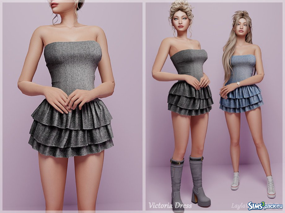 Оригинальное название - Female Denim Mini Dress (Victoria Dress). Джинсовое мини-платье без бретелек с приталенным лифом и многослойной юбкой с оборками. 10 образцов. Для женщин.