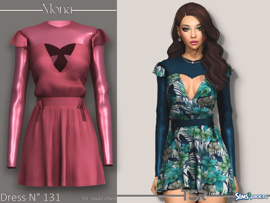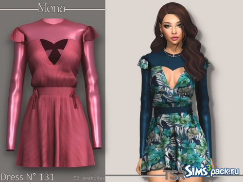 Скачать Платье в рубчик с бантом от Mona для Симс 4