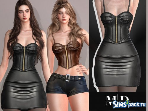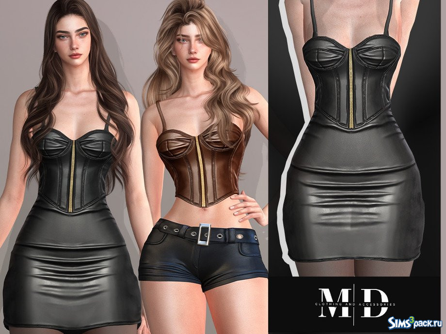 Скачать Чёрное кожаное платье от Mydarling20 для Симс 4