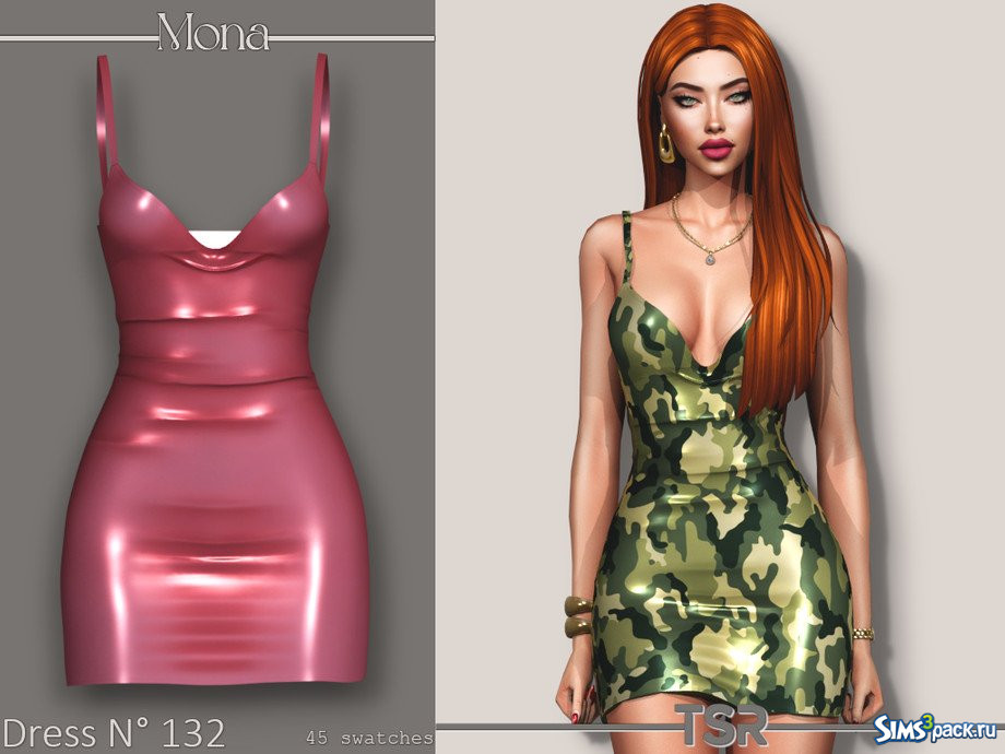 Скачать Шелковое облегающее платье от Mona для Симс 4