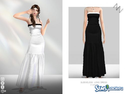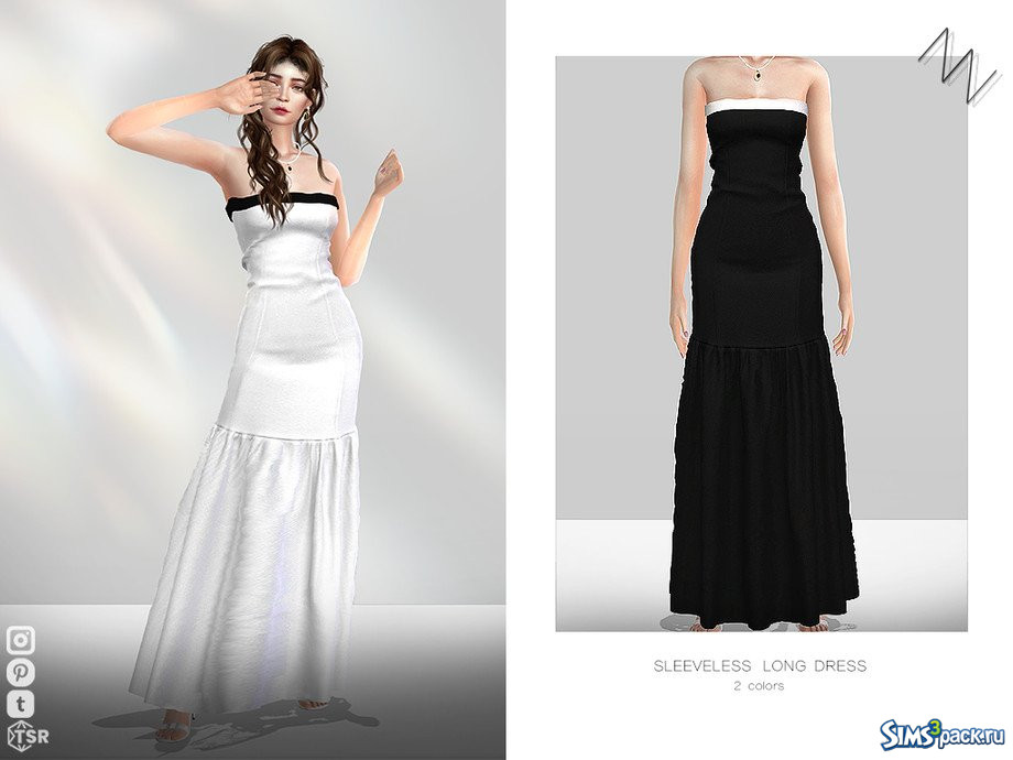 Скачать Длинное платье без рукавов от ZNsims для Симс 4