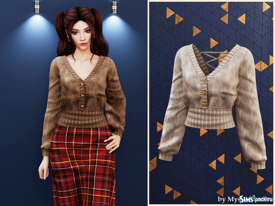Скачать Трикотажный свитер с открытой спиной от MysteriousOo для Симс 4