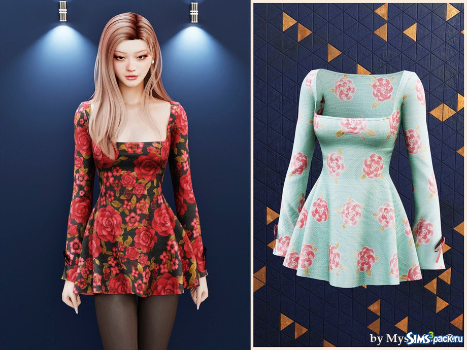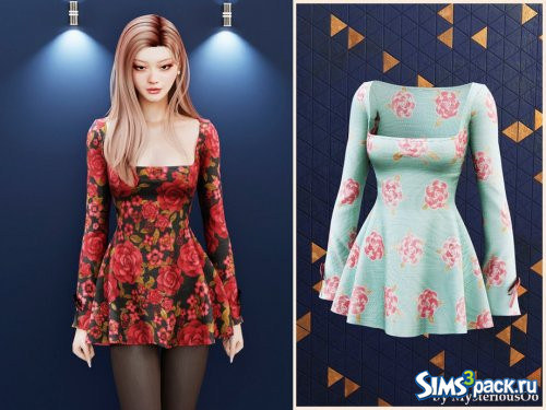 Скачать Мини - платье с квадратным вырезом в цветочек от MysteriousOo для Симс 4