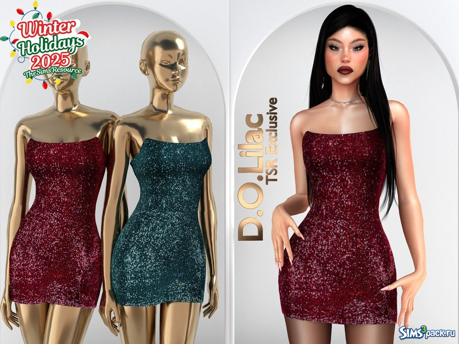 Скачать Мини - платье с вышивкой и бисером от D.O.Lilac для Симс 4