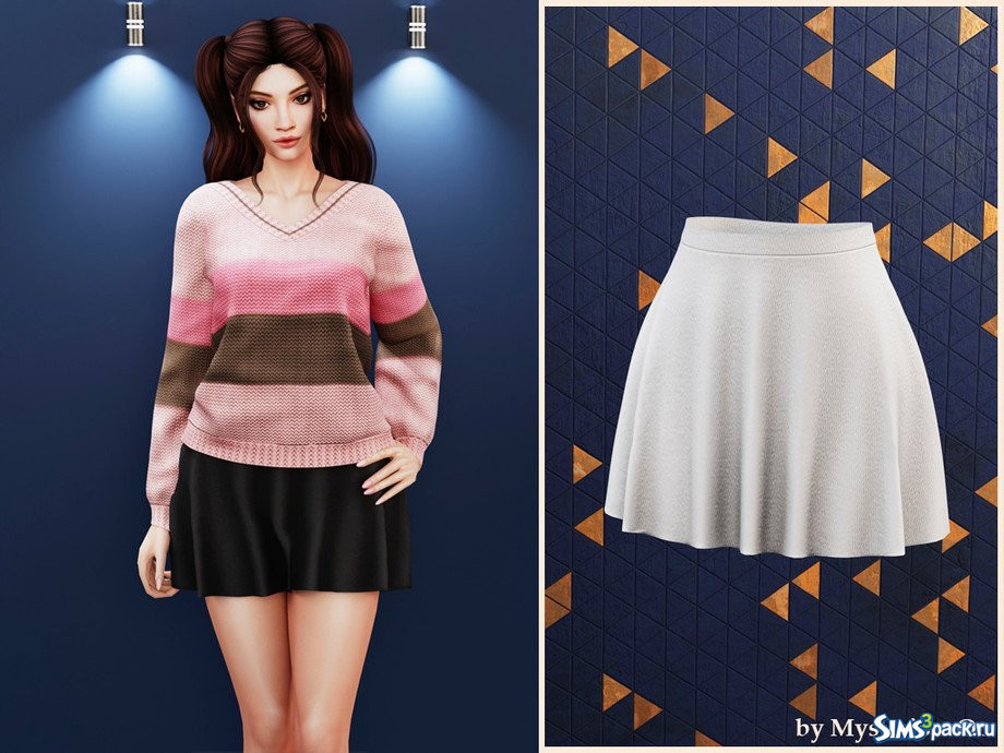 Скачать Повседневная расклешенная трикотажная юбка от MysteriousOo для Симс 4