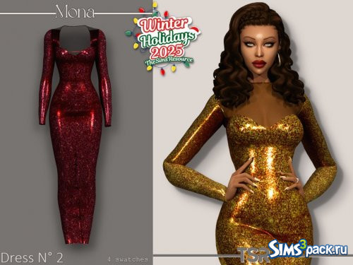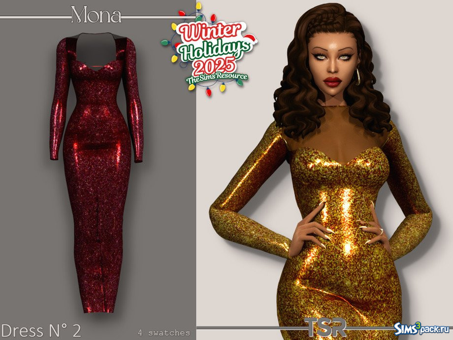 Скачать Длинное блестящее платье от Mona для Симс 4