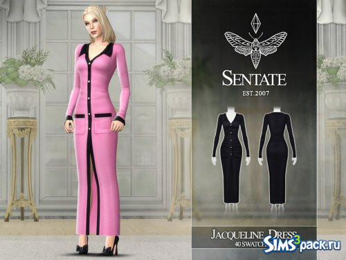 Скачать Длинное платье на пуговицах от Sentate для Симс 4