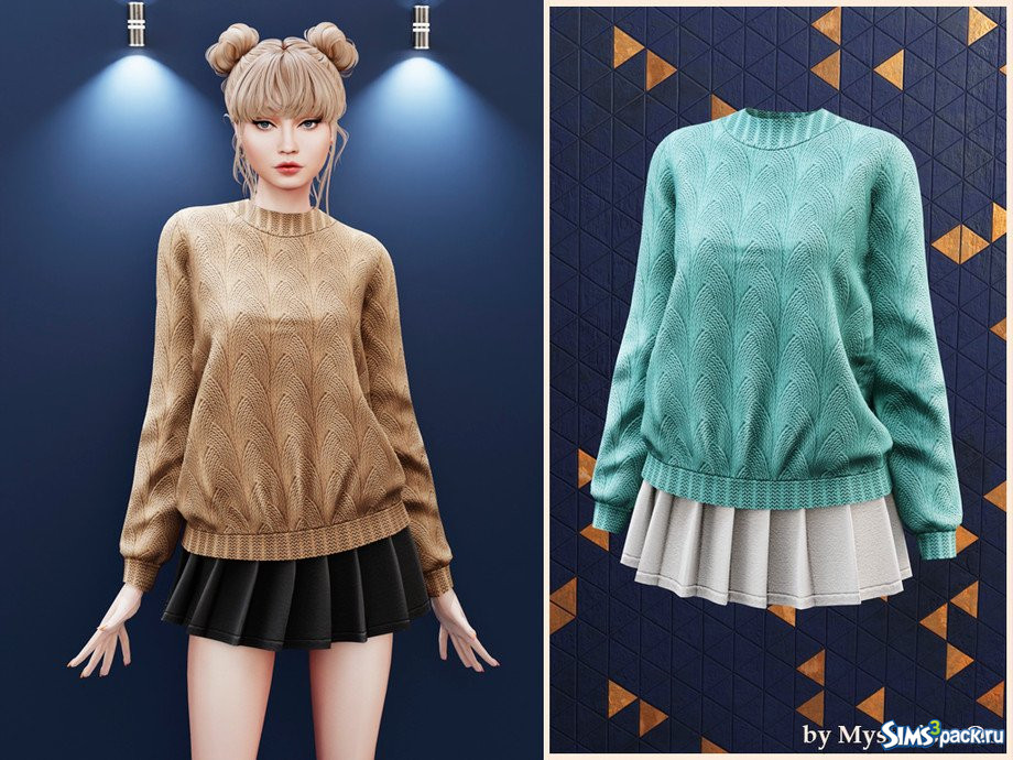 Скачать Комплект из вязаного свитера и юбки от MysteriousOo для Симс 4