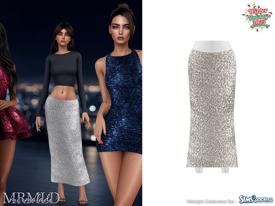 Скачать Макси - юбка с пайетками от Mermalade для Симс 4