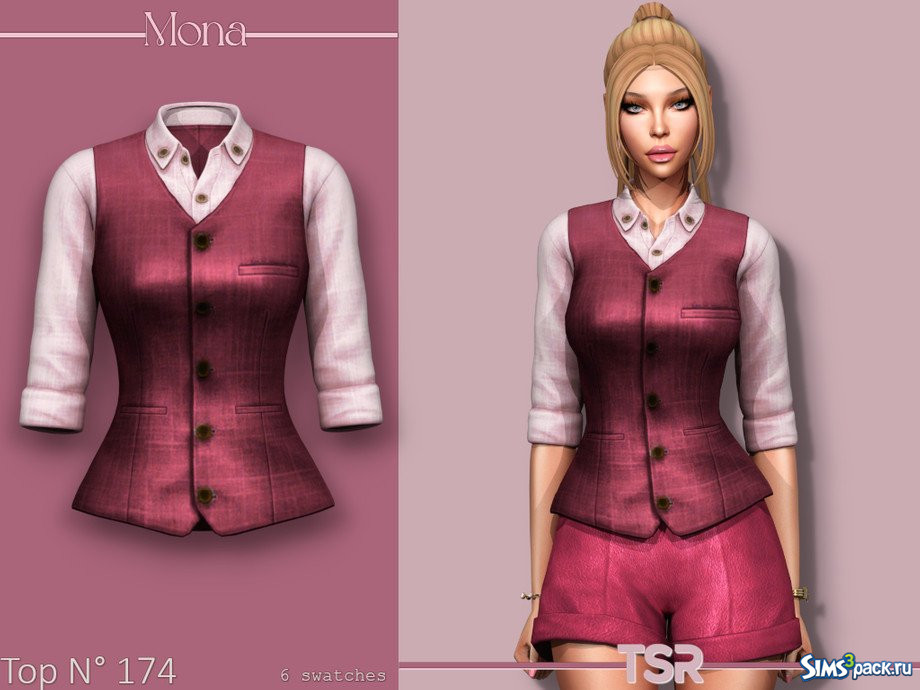 Скачать Рубашка с кожаным жилетом от Mona для Симс 4